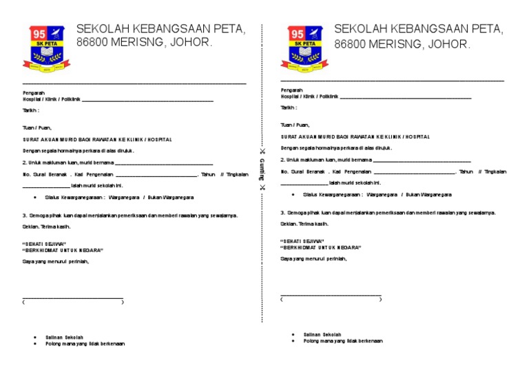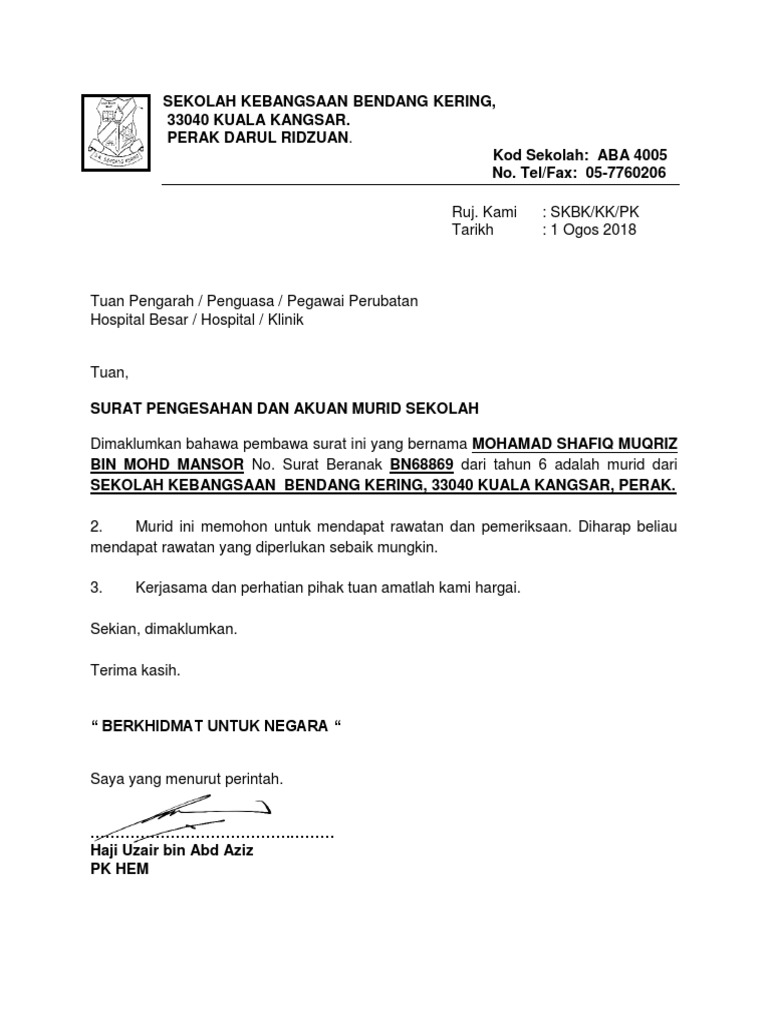 Contoh Surat Rawatan Hospital Pelajar Pdf